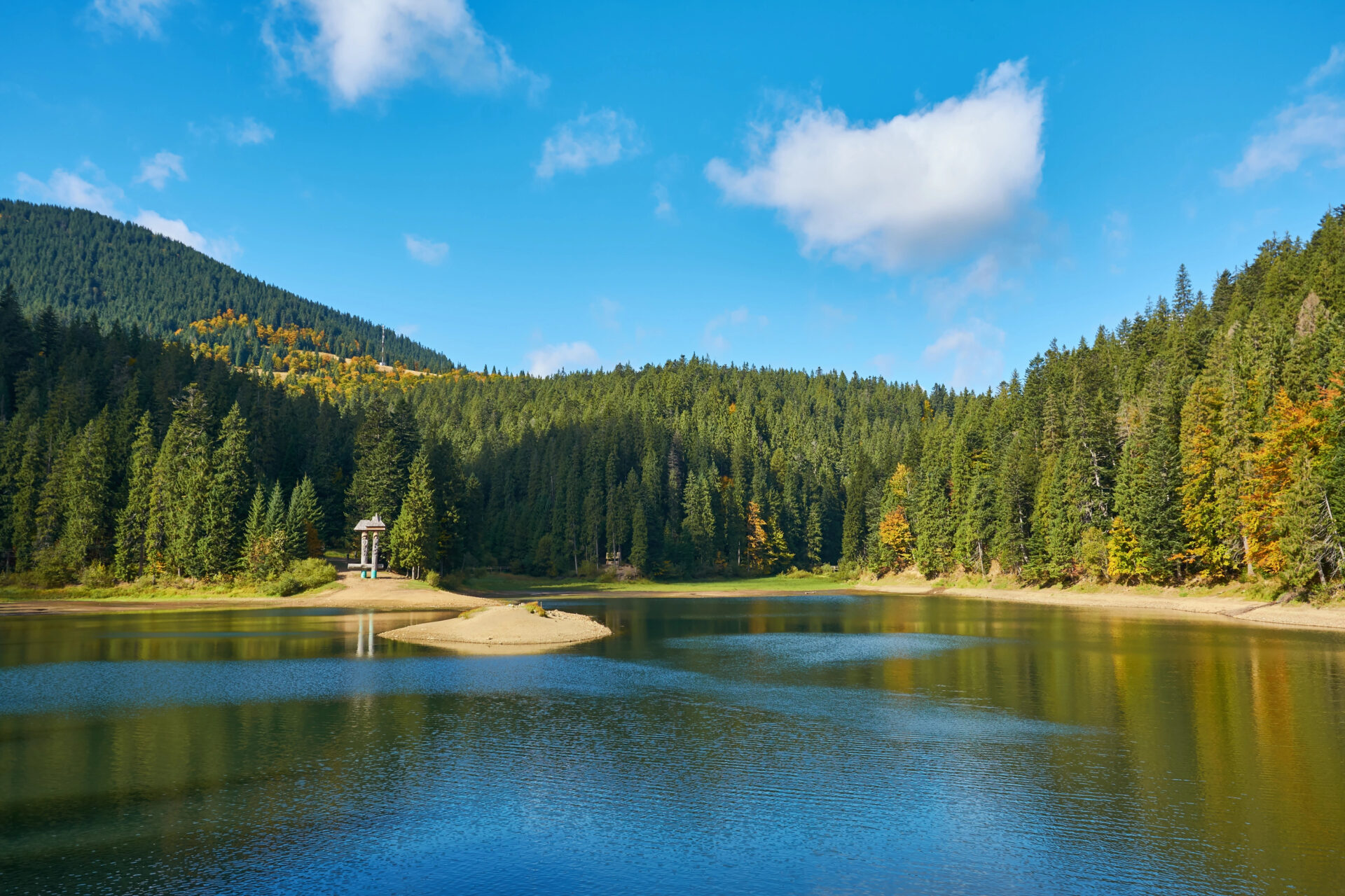 Блакитне око Закарпаття — так часто називають високогірне озеро Українських Карпат, його окрасу, одне з семи чудес України. Екскурсія національним природним парком “Синевир” — це можливість сповна насолодитись розкішшю та чарами гірської та водної стихій. Озеро Синевир розташоване на висоті 989 м над рівнем моря. Максимальна глибина озера — 24 м. Вся краса Українських Карпат сконцентрована в цьому місці, якою можна сповна помилуватись під час мандрівки національним природним парком “Синевир”. Озеро прикрашає скульптура, яка уособлює двох закоханих: юнака на ім’я Вир і дівчину Синь. За легендою саме від їхніх імен походить назва озера. Скульптури Сині і Вира — символи нещасного кохання, історію якого Ви тут почуєте.